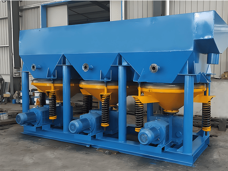 跳汰機的工作原理是在垂直交變的介質流(水或空氣)的作用下,利用礦物原料的比重差異實現(xiàn)分層。在跳汰過程中,比重較大的礦物沉降至分選槽的下層,形成重礦物或精礦;比重較小的礦物則浮升至上層,成為輕礦物或尾礦。通過專用的排料系統(tǒng),這兩種不同比重的礦物層被分離,分別排出以獲得精礦和尾礦。跳汰機在連續(xù)運轉中不斷接收新原料,實現(xiàn)礦物的持續(xù)分層和分離,形成一個連續(xù)的跳汰選礦過程。